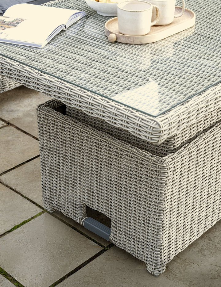 For relaxed garden dining for up to seven people, we can’t help but love this Kettler Palma Corner Set (RH) Adjustable Glass Table in Whitewash. Kettler’s beautiful Palma range is inspired by the cool, laidback style of the Balearics. With a beautiful whitewashed-rattan effect and deep charcoal-coloured cushions, this corner sofa set more than hints at sunny Palma days and legendary Balearic sunsets. Sit back and relax on the deep foam cushions and you’ll soon be dreaming of sunny Spanish skies.