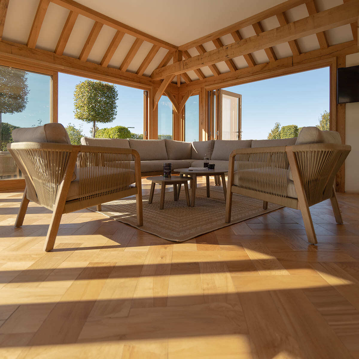 The Martinique Corner Sofa Set showcases the FSC acacia wood throughout this garden furniture set. Over time, this wooden lounge set will gradually transition into a silvery grey hue, enhancing the character of your outdoor furniture. Each piece has been crafted with a PU coating, bolstering the wood’s durability, and requires less maintenance.