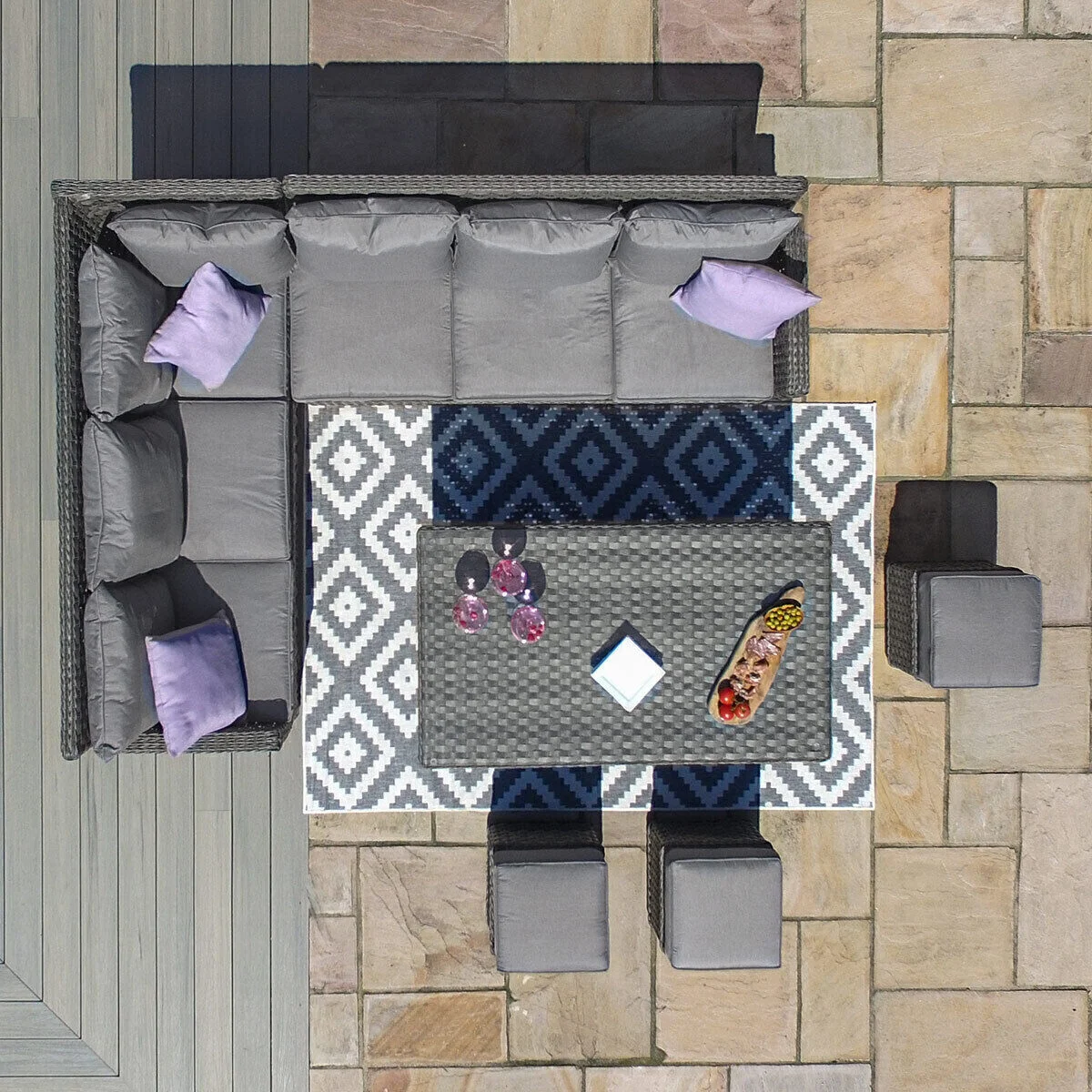 The Victoria Kingston Corner Sofa Dining Set is the perfect way to combine relaxation with comfortable dining and has now been further improved with the addition of a rising table. This table provides great versatility for your outdoor space. In addition, the rising table will allow you to go from dining to lounging as it transforms from a dining table to coffee table with ease.
