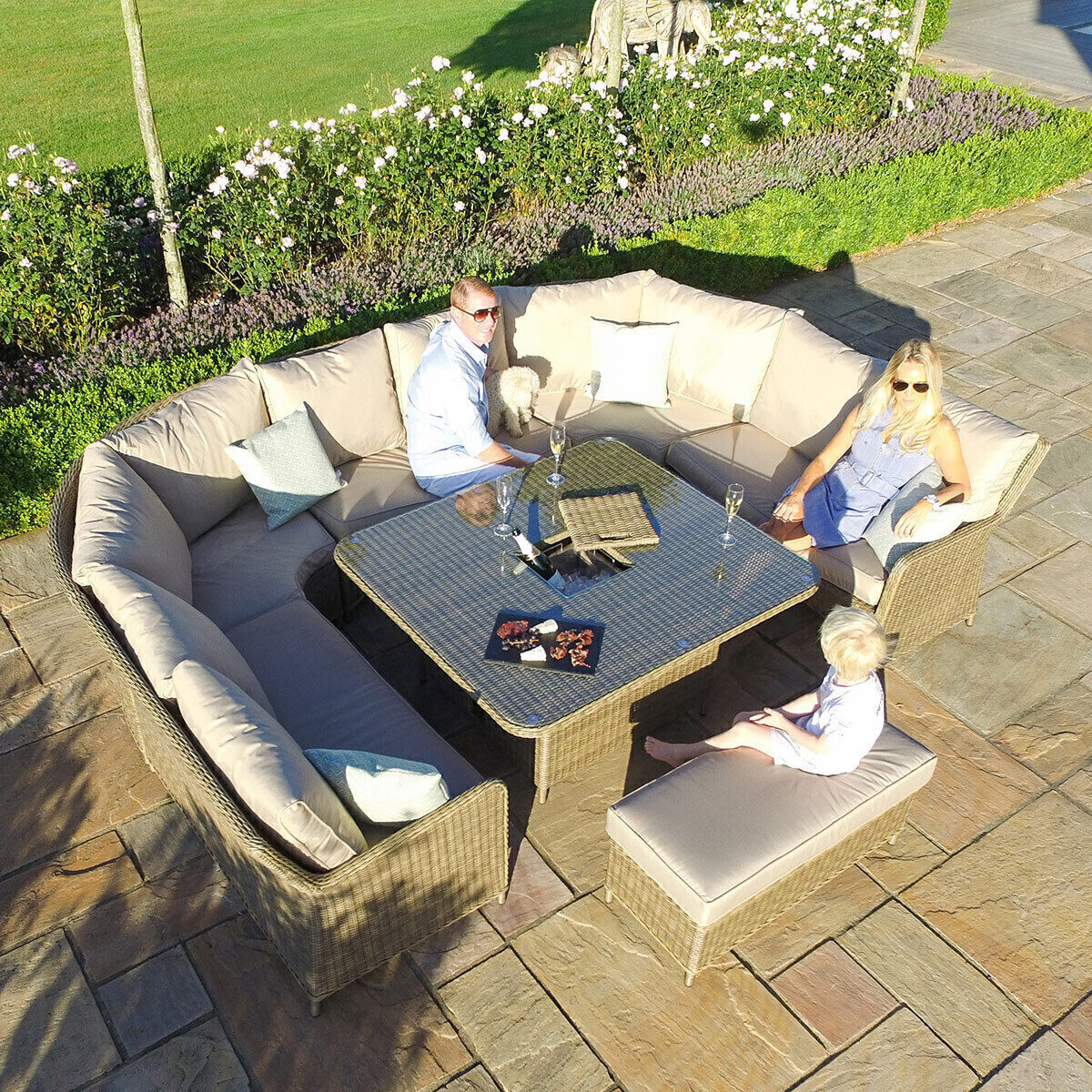 Champagne Vienna 8 Seat rattan Fire Pit With 210cm Rectangular Table