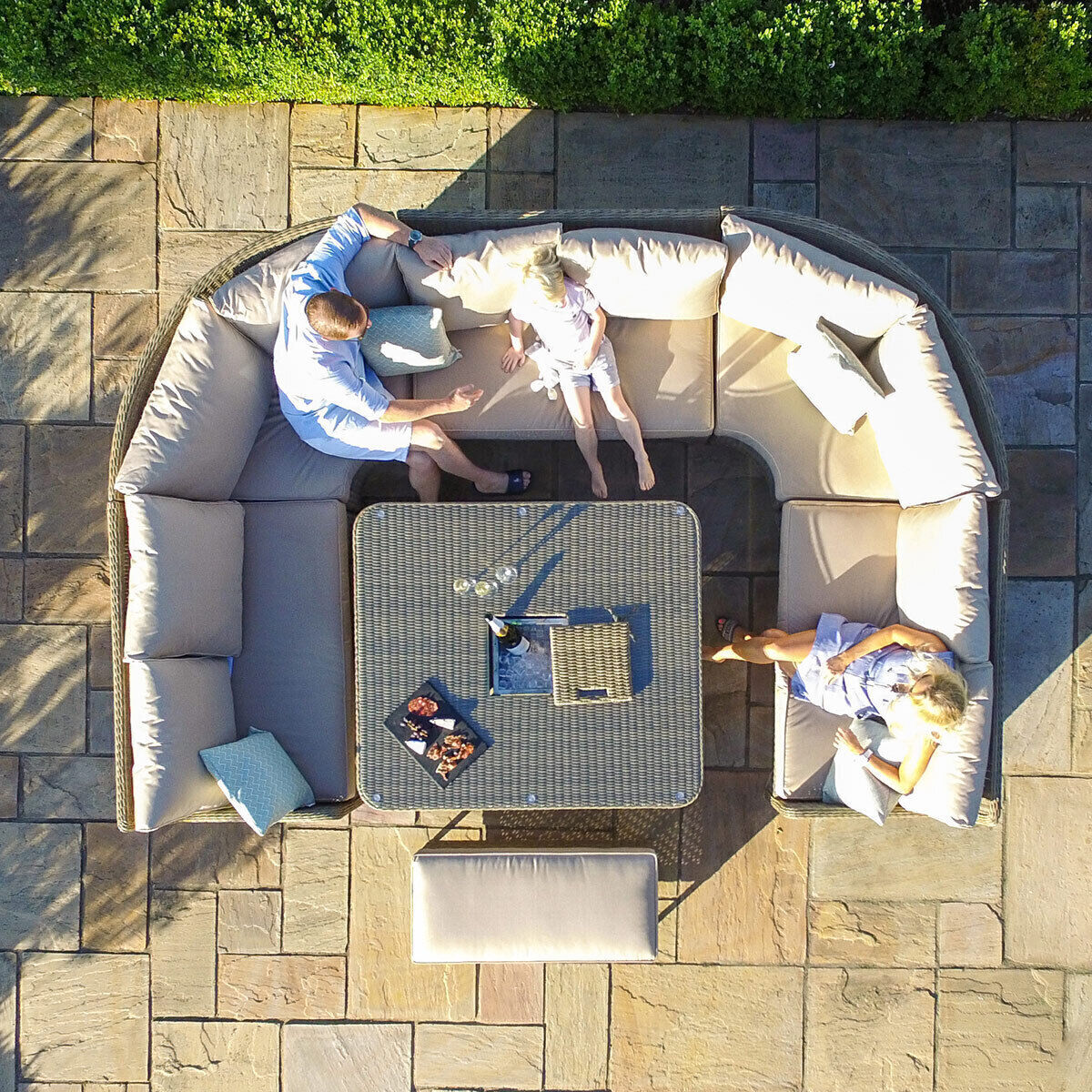 Our Winchester Royal U Shape Sofa Set with Rising Table is our largest and most intimate Rattan set created yet. It incorporates our versatile rising table which allows you to transform from dining to lounging with ease. The generous U-Shaped Sofas and additional bench bring everyone together to socialise in maximum comfort. This statement set will effortlessly transform your outdoor living space and give you the best garden experience with friends and family.